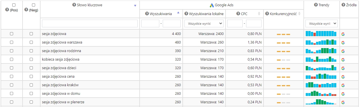 Dla takiego typu strony fraza „sesja zdjęciowa” to tylko jeden z pomysłów. Warto rozważyć także inne wyrażenia powiązane z ofertą, np. „fotograf” + nazwa miasta, czy „zdjęcia produktowe”.
