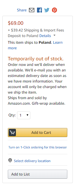 Amazon pozostawia niedostępny produkt w nienaruszonym stanie. Pozwala go zamówić nawet wtedy, gdy data dostarczenia jest nieznana. Wychodzi jednak naprzeciw kupującym, ściągając należność dopiero w momencie, gdy towar faktycznie zostanie wysłany do klienta.