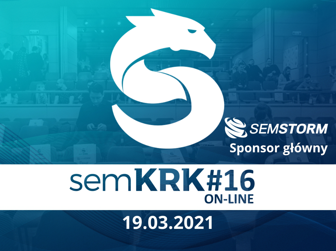 16 edycja semKRK powtórnie odbędzie się on-line. Już 19 marca (piątek) niebieski, krakowsko-semowy Smok znów zawita na Wasze ekrany, a towarzyszyć mu będzie 9 ekspertów z branży SEO i SEM. Sponsor główny wydarzenia: SEMSTORM.