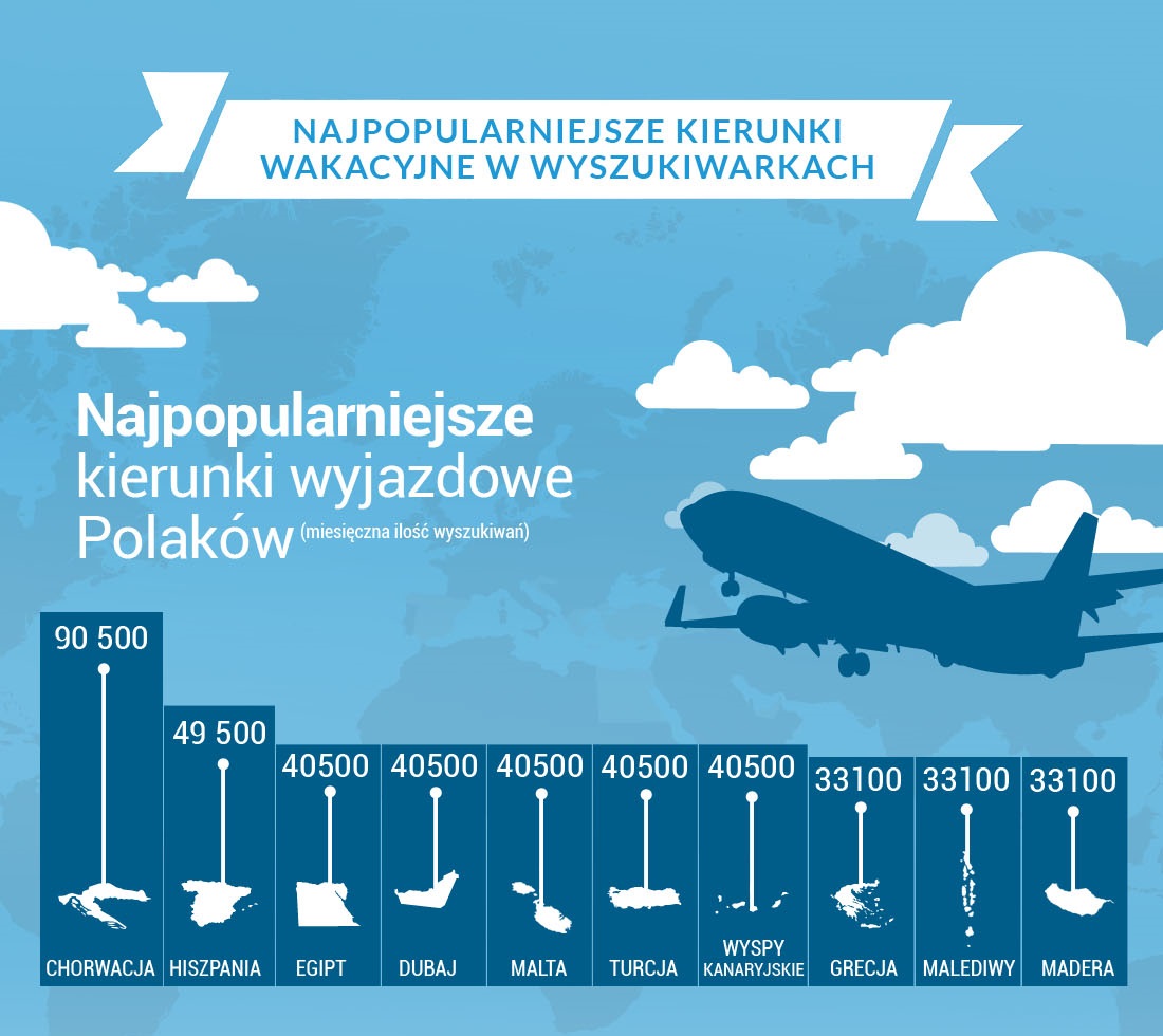 Dla tych, co jeszcze nie zaplanowali urlopu przygotowaliśmy infografikę o najpopularniejszych kierunkach wakacyjnych Polaków :)