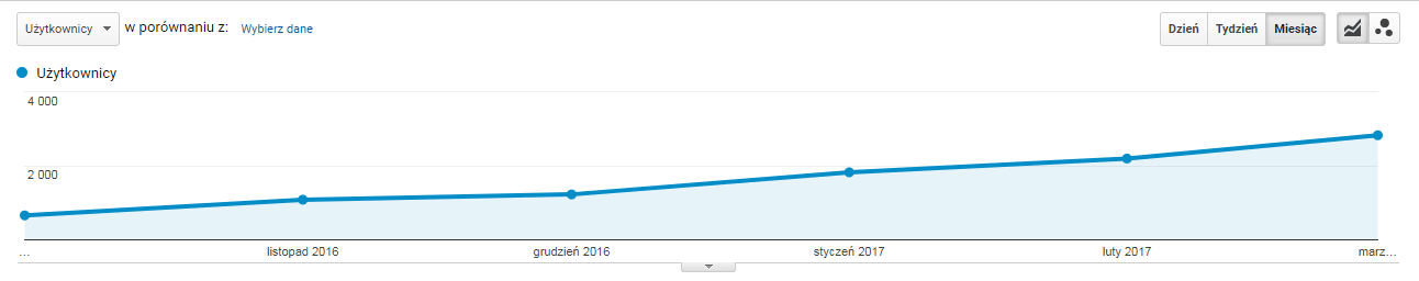 Ale po kolei. Zaczęliśmy standardowo - przeprowadziliśmy audyt SEO strony, analizę słów kluczowych, ułożyliśmy strategię działań onsite i offsite. Dużą rolę miał tu również odgrywać blog, którego właściciel firmy prowadził sam (my optymalizowaliśmy posty). Strona bardzo szybko zaczęła reagować na nasze optymalizacje, ruch i liczba wyświetleń wzrastały z miesiąca na miesiąc. Po pół roku ruch organiczny wzrósł o 670%.