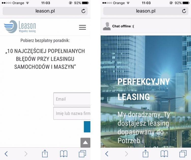 Postanowiliśmy zawalczyć, aby generowany ruch zaczął przynosić Leasonowi nowych klientów. Wykonaliśmy więc analizę UX, która miała na celu sprawdzenie, dlaczego konwersja na stronie jest tak niska, i na jej podstawie przygotowaliśmy listę zmian do wdrożenia. Zbadaliśmy customer journey (ścieżkę użytkownika) i wykryliśmy, że odwiedzający stronę chętnie czytają bloga i są to dla nich treści wartościowe. Jednak nie były to teksty konwertujące, ponieważ nawet jeśli ludzie chcieli zapytać o pomoc i zamówić usługę leasingową - brakowało takiej możliwości. Dlatego za naszą radą, w newralgicznych miejscach strony (m.in. właśnie pod artykułami na blogu) pojawiły się formularze kontaktowe. Użyliśmy przy nich zdjęcia właściciela, aby uwiarygodnić, że za firmą i kontaktem stoją żywi ludzie. Był to strzał w dziesiątkę, ponieważ przez formularze zaczęły spływać zapytania ofertowe.