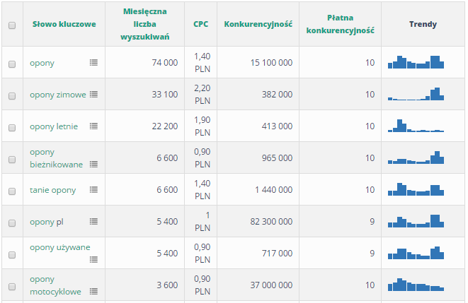 Każda fraza może mieć różną liczbę wyszukiwań w zależności od miesiąca. Jeśli prowadzisz biznes uzależniony od pory roku, warto zwrócić na to szczególną uwagę.
