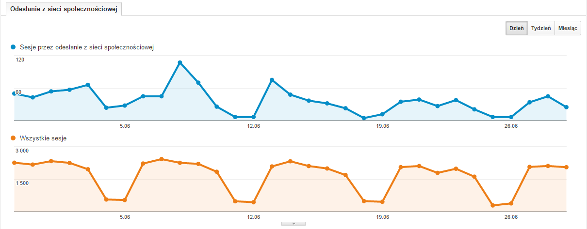 - Pozyskiwanie - informacje dostępne w tym miejscu pozwolą Ci zmierzyć efektywność Twoich działań promocyjnych. Dowiesz się, czy użytkownicy trafiają na witrynę z kanałów społecznościowych, wchodzą na stronę bezpośrednio, czy zostają zachęceni do przejścia na nią za pośrednictwem newslettera.