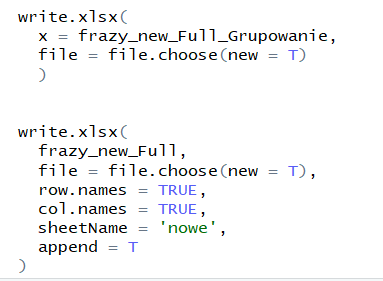 Ostatnim elementem skryptu jest eksport danych do plików xlsx.